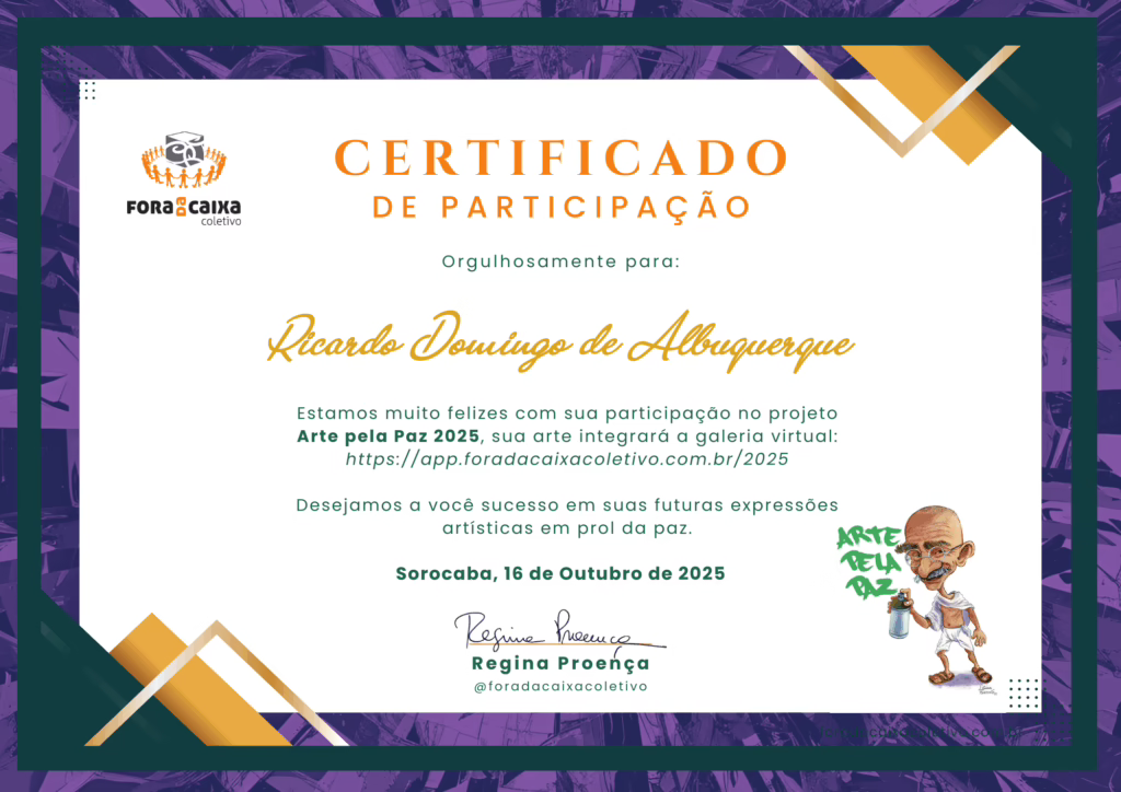 Abaixo mostro como fiz para criar os certificados do Arte pela Paz 2025, mas você pode adaptar o mesmo processo para qualquer evento.